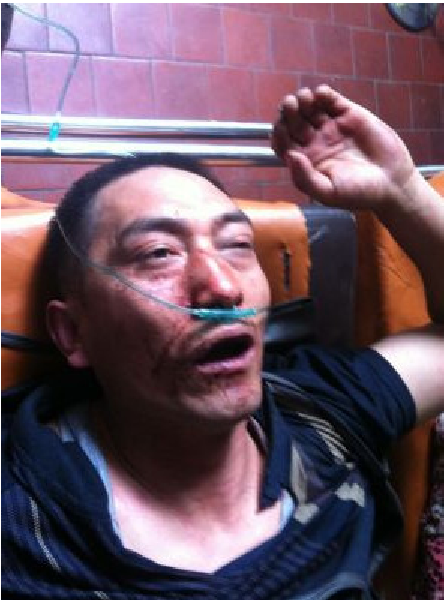 几乎与此同时,米祥荣被十几名城管人员拉拽至车内,进行疯狂的殴打,直致米祥荣口吐鲜血,无法动弹,几近休克。