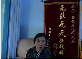 (维权网信息员方芳报道)今天(9月5日),本网信息员获悉:辽宁彰武暴力拆迁受害人近70岁的洪玉英老人制作了一面上书“授予彰武县人民政府无法无天县政府称号”的锦旗,抗议地方政府无法无天,暴力强拆她的家园,疯狂毁坏她的财产,野蛮殴打她的家人的恶劣行为。