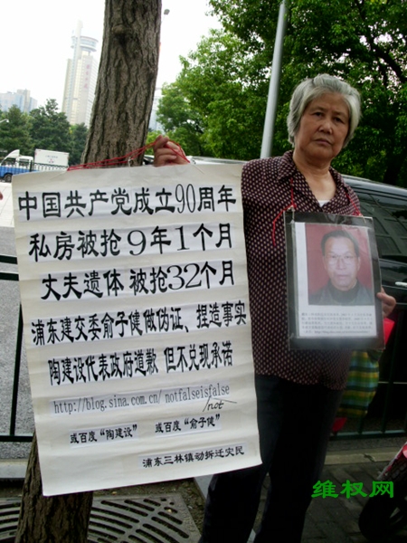 陈勤珍(陈勤妹的姐姐,因上访维权)被刑事拘留,现关押在上海市浦东新区看守所。