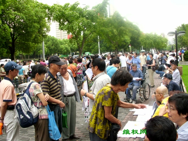 (维权网信息员晨晓报道)9月5日上午,上海5千余名民众聚集在市人民大道200号,这里是市人大、市委、市人民政府信访办。抗议的维权民众大多数是被强征土地、强拆房屋、医疗纠纷、司法不公等受害者,长期以来大家都是自发聚集进行抗争。维权民众是被那些自称“人民政府” 的一些人的贪污腐败,渎职侵权的直接受害者。“人民政府”对人民的强抢掠夺、滥用职权随意打压依法维权的民众。人民不再屈服,坚决抗争到底,追究和惩治腐败贪官违法犯罪的责任。