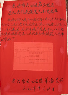 王云青夫妇在张贴时,惊喜地发现,区人大选举委员会在此前刚一会又张贴了一张公告,他王云青榜上有名!很快,王云青成为天心区30选区初步候选人的消息上了互联网。
