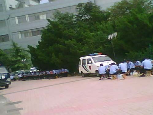 (维权网信息员功长虹报道)本网信息员获悉,山东济南市泉城广场多日来被警员封锁,昨日(2012年9月16日)正值星期日。官方大量增加了警员,防范大学生发起的“保岛”游行活动。警员由蓝衣警员、黑衣警员、保安三部分人员组成,遍布广场各个角落。泉城广场泉标附近8组四个方向蓝衣警员换班警戒。还有流动巡逻车,蓝衣和黑衣流动巡逻警员。凡是有进口的地方都有塑料制品的挡板,挡着人们进出。怕有人带入标语,一般站岗人员会让准备进广场的人员打开包查验一下,看看里面有没有可疑物品。如临大战一样的超级戒备。