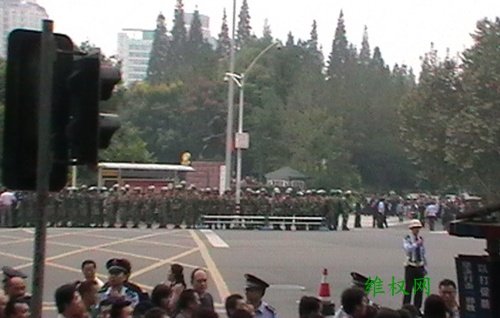 据游行群众说:上午九点半左右,小股的游行人员(不足100人)从总府路往“川军抗日英雄纪念碑”达到后,被警方强行驱散,据说有人被抓,但无法核实具体情况。