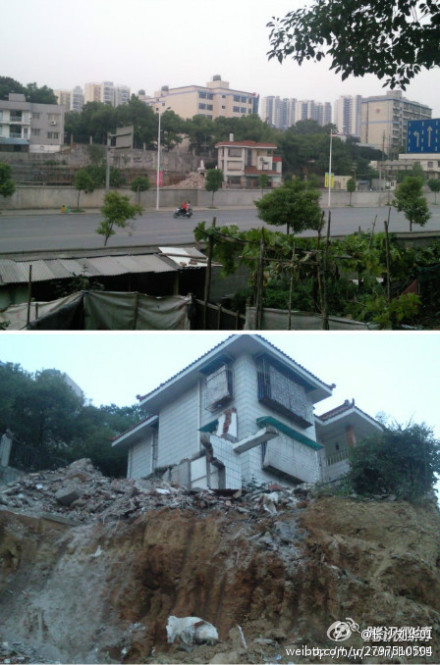 现在开发商已经在房子周围安营扎寨,准备施工打地基了。长沙公民彭佳的房屋已经被逼到了悬崖边上。海林馨香雅苑开发商圈地既不与业主协商也不走法律程序,每天深夜二点后派施工队偷偷施工,致使房屋已经有倾斜现象,俨然成了危房,随时会发生危险,住户生命财产得不到保障。彭佳发出慨叹:“不强拆就偷拆?人性何在?我会誓死捍卫法律赋予我的合法权利!跟他们抗争到底!”