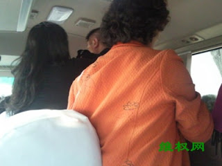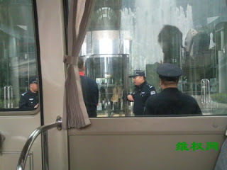 (维权网信息员张勇报道)10月2日中午12点30分左右,湖南上访维权者刘华等17人,在北京 东方 君悦大酒店退房,被警察以查身份证为由,招来黑保安,将他们17人强行送进一辆车牌为“京B12614”的大巴。后上来两名黑保安,在警察的眼皮底下,殴打了老人李仲瑜。大家向现场警察求助但警察不理睬。访民们要求去派出所做笔录被警察拒绝。警察将他们全部送往久敬庄关押。