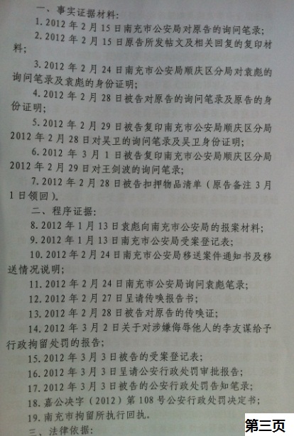 行政复议期间,被告向行政复议机关嘉陵区政府法制办公室提供的资料总共“12项31页”,这些资料与上诉人在行政复议期间向复议机关复印的资料相同,是被告作出行政处罚行为的依据: