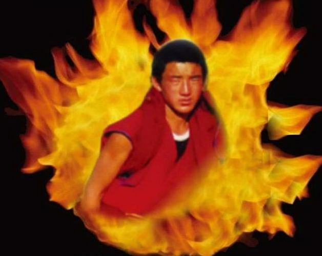 附:巴丢草所画自焚藏人照片: