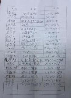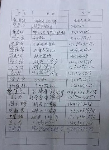 参加集会抗议的上访维权者有:河南省汝州市李明翠(13261924162);湖南省桂东县郭卫龙(13437381471);湖北省汉川市余丹明(15272005580);天津市许乃来(18210789971);江苏省南通市许金华(13275280791);上海市宝山区朱萍萍、长宁区吴玉芬(13121947938)(13585854650);陕西省宝鸡市吕动力(13021151218);湖北省郧西县郑大靖(13041209988);湖北省武汉市万少华(13264046150)、李玉琴(15337105807);江苏省沈立秀(15010913823);广西桂林市杨桂林(13020026871);吉林省敦化市董奎红(13843309789);辽宁省本溪市刘力(15174001850);湖北省十堰市周大珍(13042763698)、冷新芳(15871081984)、尹登珍(13241102676);河北省葛志勇;甘肃省侯敏玲;辽宁省大石桥市邓承喜等人。