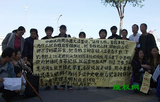 (维权网信息员关小令报道)10月18日上午,在京的各地上访维权者集会抗议,揭露当局腐败,贪官横行霸道,有法不依,导致公民人权无保障,反腐公民遭到残酷无情地镇压和迫害,大家用各自苦难生存经历质询当局“我们幸福吗?”