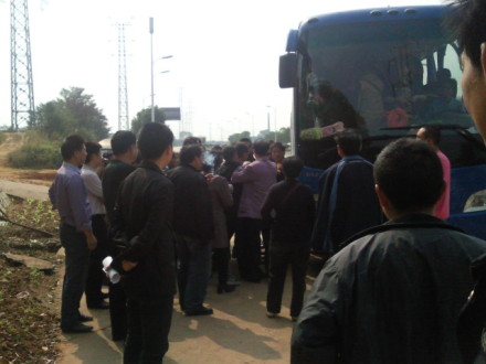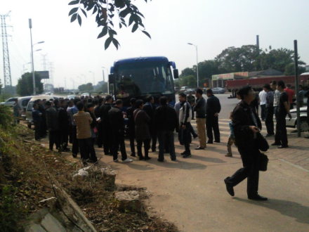 今天(2012年10月20日)上午,遣送他们的大巴车回到长沙,停在湖南610办公室(原来负责法轮功上访的地方),让被扣押人员下车,遭到拒绝。闻讯赶来的家属,因获知自己60多岁的亲人骆凤球老太太被打,情绪激动 ,现场来了很多警察。长沙各区政府、街道办、各派出所都来了人。但是公安局没有人去抓打人凶手,政府官员只说会给个答复。家属们不答应。随后,政府工作人员将车和人一起来开走,连同旅游人员和黑保安。