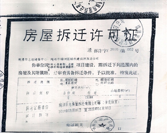 江苏省南通市维权人士张俊国、徐丽艳夫妇俩合法经营的《江苏省南通市红枫丽莱木业公司一号桥地板厂》的厂房于2011年1月22日遭到南通市政府和深圳华强北集团官商勾结强拆,造成张俊国、徐丽艳夫妻数千万财产损失。非法暴力强拆之后,张俊国、徐丽艳夫妇向南通市公安局港闸分局、检察院、法院要求立案,400多天无结果。因此,夫妇俩从地方上访到中央,无人给一个说法。张俊国、徐丽艳夫妇一夜之间从千万富翁变为乞丐。