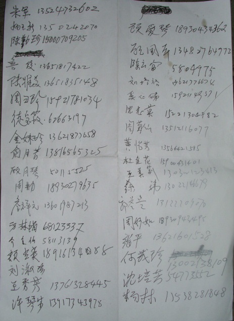 上海部分上访维权人士(附:签名单)为了伸张正义、反对腐败、反对掠夺、要求南通市公安局港闸区分局立即释放张俊国、徐丽艳夫妇。