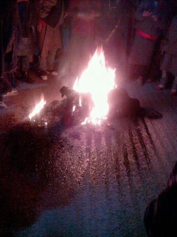 近日,甘肃省甘南藏族自治州公安局发布重金悬赏举报藏人自焚的“幕后黑手”、举报计划自焚者的通告。此通告贴满了甘南州一市七县的城镇和乡村。在此通告贴出之前,甘南州已有6位藏人自焚(玛曲县1位、夏河县2位、合作市3位),然而,在此通告贴出之后,短短5天,甘南州连续有4位藏人自焚,甚至贴出的第二天,就有藏人顿珠在拉卜楞寺内自焚牺牲。