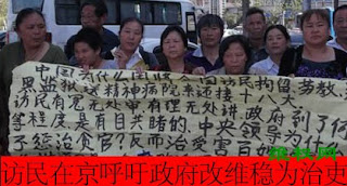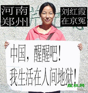 郑州访民刘红霞已经被地方政府腐败剥夺了基本的生存权,上海的金月花、葛容已经被政府腐败剥夺了基本的财产权,黑龙江访民沈福田已经被政府腐败剥夺了基本的生命健康权,河南驻马店访民胡醒爱母女如刘红霞一样现在一无所有......拘留、劳教、判刑、精神病医院等不管什么卑鄙的手法都是不可能阻止她们无畏的上访之路。