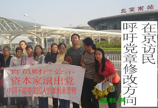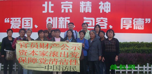 请求中国政府依照访民的心愿修改党章——党内官员财产公示,从源头上遏制腐败,真正做到“为人民服务”。