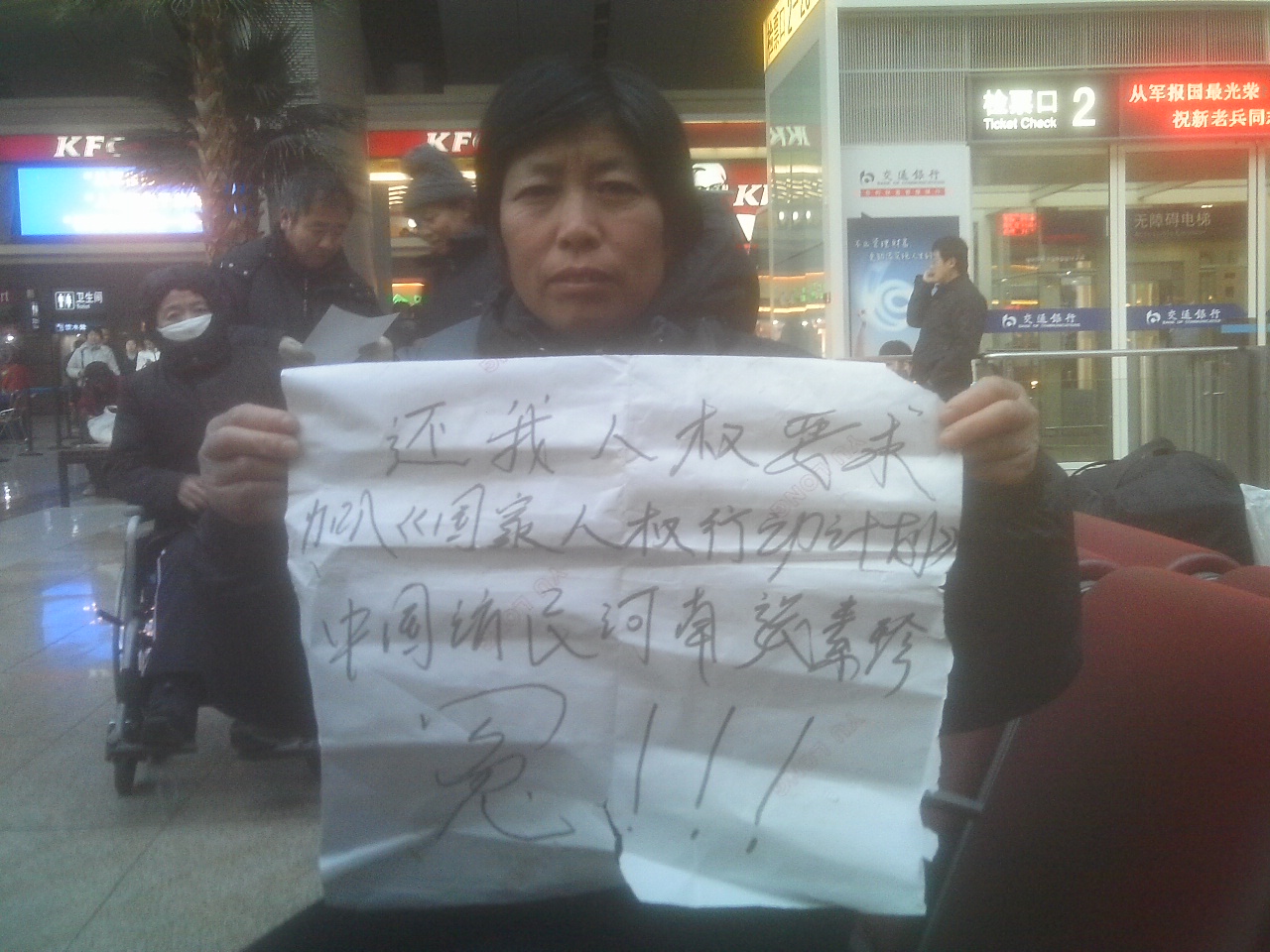 (维权网信息员刘敏报道)今日(11月2日),本网信息员接到维权人士提供的材料,说河南访民张素珍因到北京打工,日前被抓后遣送回河南,又被河南警方关押到“访民训诫所”,家属探望不被允许,天气寒冷想送衣服进去也被警方拒绝。