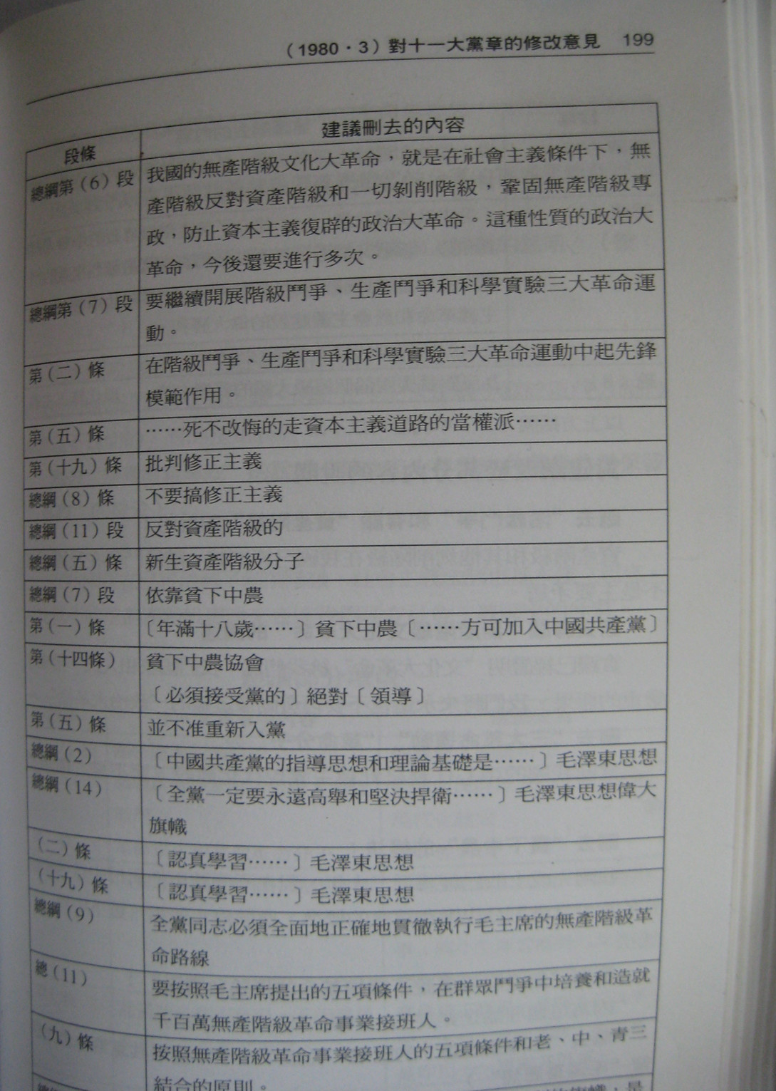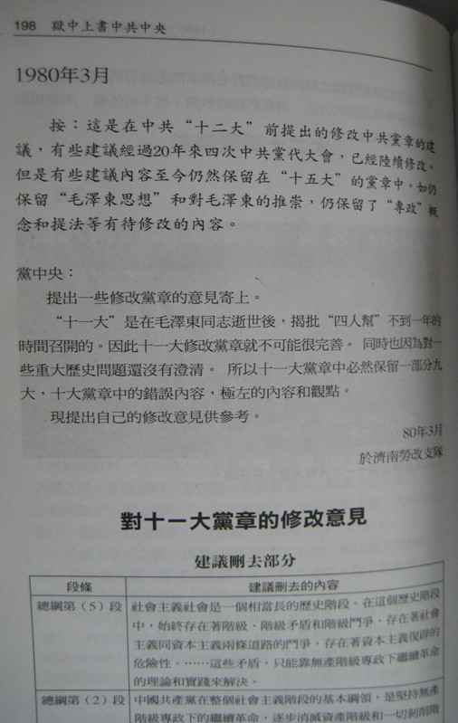 对十一大党章的修改意见(摘录自《狱中上书》P198-P201)