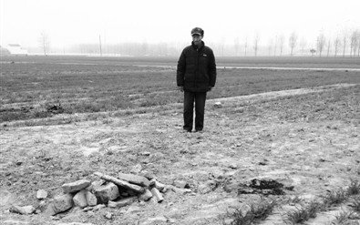 后来,村小组长张秀峰找到张方说,上面要求墓碑也得挖掉。要把墓碑底座刨开,在墓碑前挖个坑,把墓碑推到坑里,填埋平整,不能妨碍他人种地。