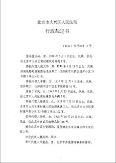 另外,大兴法院程序违法。首先,大兴法院于2012年1月10日立案,直到11月才作出裁定。显然违反了法定程序。其次,大兴法院第一次送达传票,徐庆岭夫妇及其代理人按时到庭,大兴法院却突然宣布不开庭了,也不说明理由,违反了《法官行为规范》的有关规定。