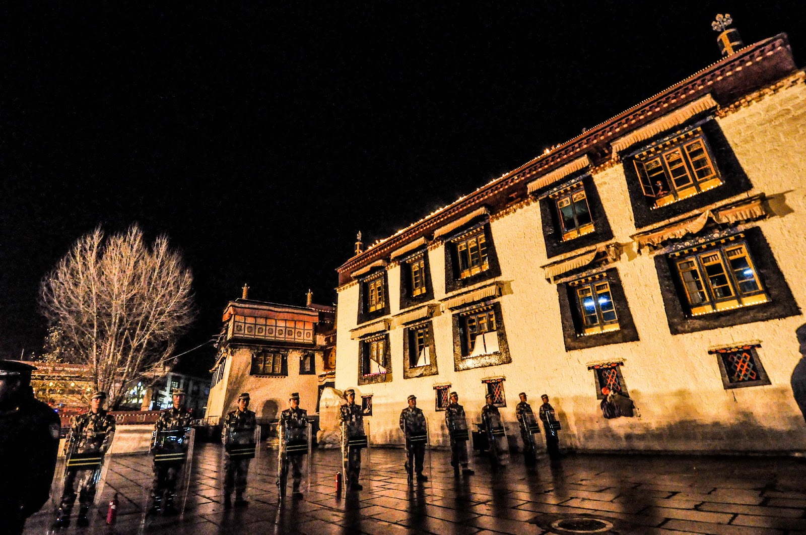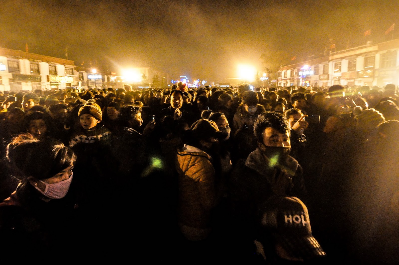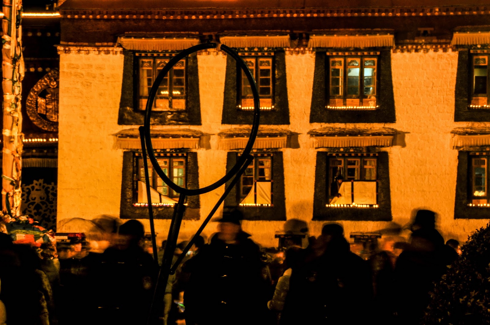 “听当地藏人说,今天是2008年3月中之后最紧张的一天。军警也是这几年最夸张的一次。还听说以前燃灯节时在大昭寺跟前的香炉烧得极旺,今年虽然有烟,但不多了。
