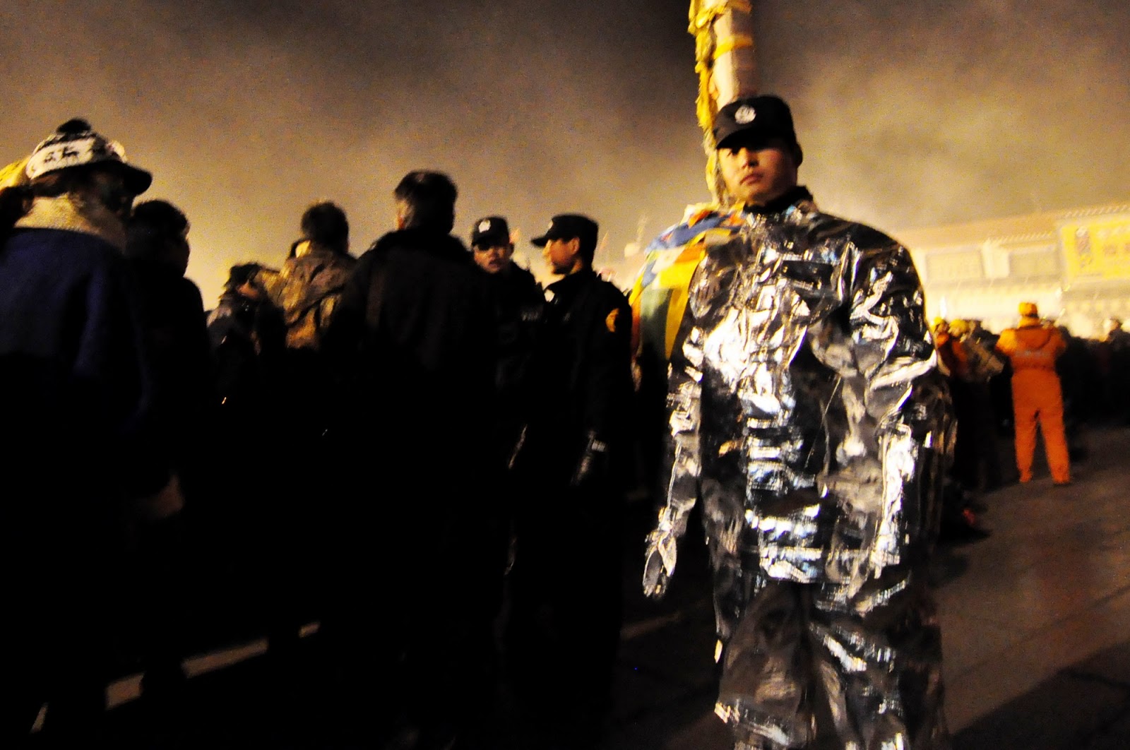 “其中有些军警,穿了全身银色的衣服,带透明面罩,远看好像航天员,又像‘外太空特警’,这应该是新出炉的‘防火装备’。”