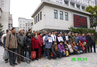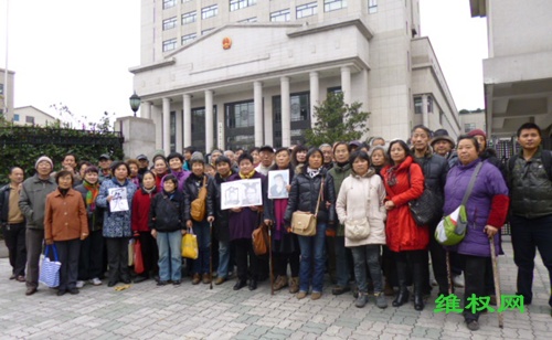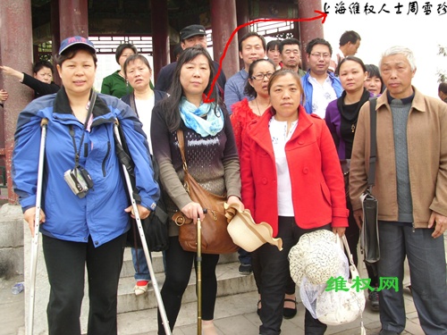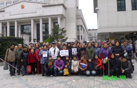 | 声援周雪珍的维权人士在第二中级法院外合影留念 |