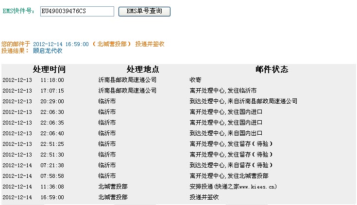 图3、陈光福寄给临沂中院的上诉状邮件网上跟踪查询情况
