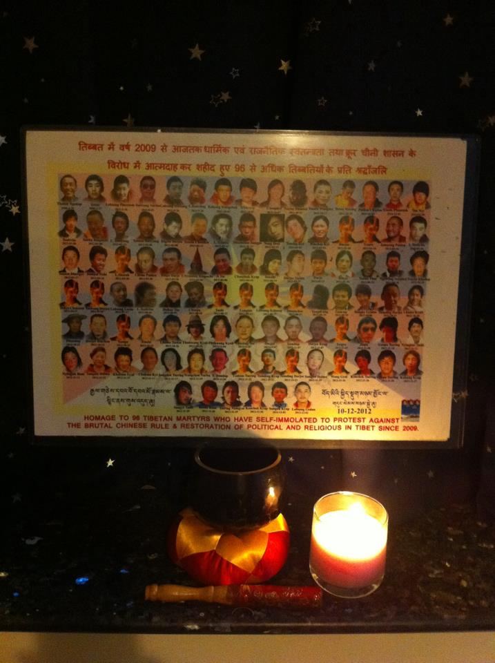 香港女记者蔡淑芳在“廣場活碑 ”网站为所有自焚藏人建立“人物志”,并在脸书上发表这张照片写到:“末日倖存者為西藏自焚殉道者供燈念誦大悲咒,祈願離苦超渡和平安祥。今天重讀「西藏生死經」,記下達賴喇嘛尊者訓示:在今日高度互相依存的世界裡,個人和國家都無法自己解決。我們彼此需要,因此,我們必須培養世界性的責任感。保護和滋養我們的世界家庭,支持弱勢的成員,並保存和照顧我們所生存的環境,是我們集體的和個人的責任。”