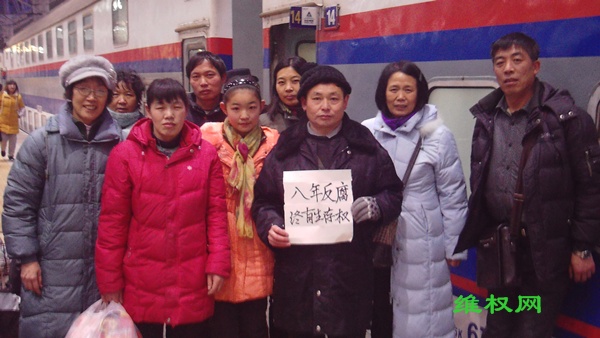 (维权网信息员蒋正义报道)12月26日,在北京的各地上访维权者,热烈欢送湖北省郧西县在京维权人士郑大靖及其家人返回家乡,结束了八年上访维权的背井离乡生活,终于过上有房住、孩子有学上的平安生活。