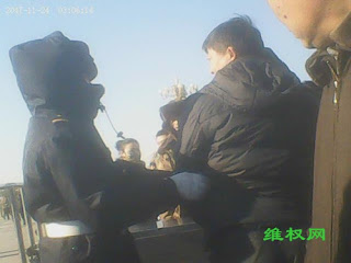 (维权网信息员田静民报道)2013年1月1日中午11点多钟,吉林上访维权者杨忠和、宫明孝两人在天安门金水桥附近撒冤案材料时,被天安门分局警察带走,目前情况不明。