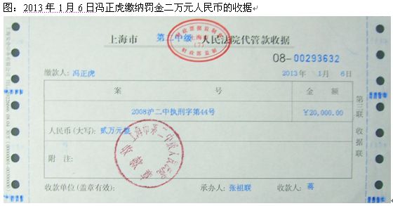 图:2013年1月6日冯正虎缴纳罚金二万元人民币的收据