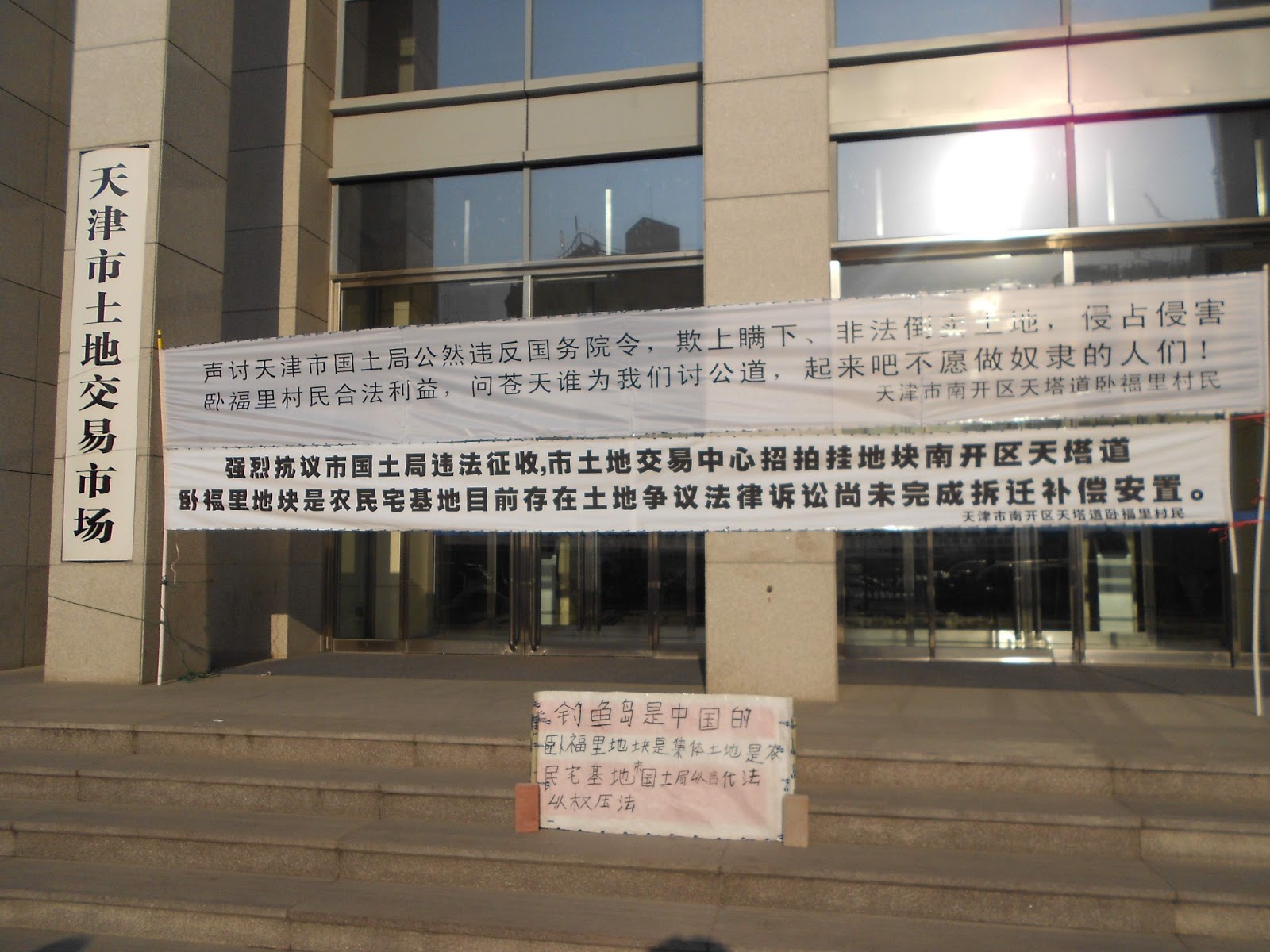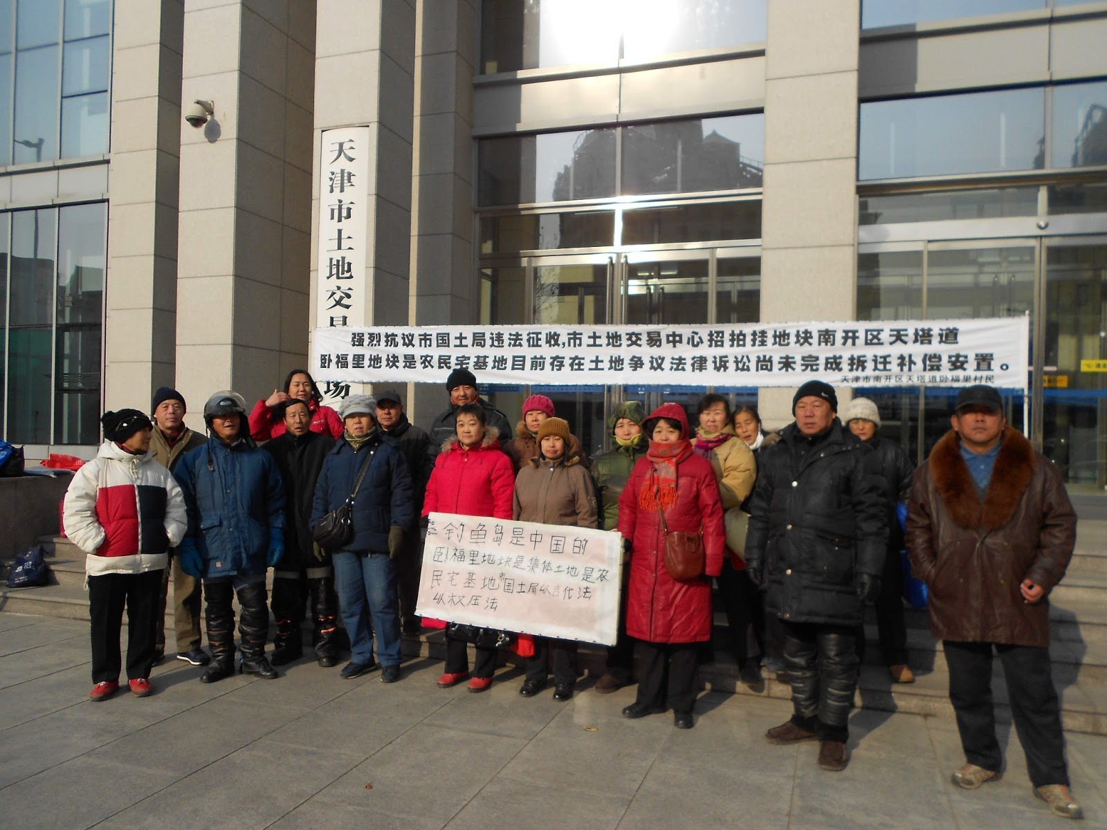 (维权网信息员藓民报道)继2012年底30多天的抗议活动,新年伊始元月9号,天津南开区卧福里无家可归的居民继续到国土局举行抗议活动。抗议天津国土局违法拍卖宅基地且又是“毛地”。