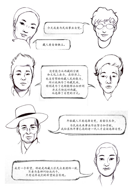 在此先转载他新的动画短片:《燃烧的遗书 Talk about Tibet — The Burning Words 》。他哀伤地写到:“在他们以死进谏的时候,我挽回不了逝去的生命,只能停下来一分钟,听那些火焰中呼号的声音。”(唯色注:其实不是“进谏”,而是反抗。)