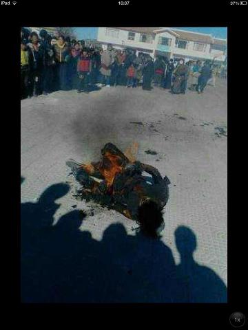 下午较晚时,在推特上看到推友 @sherta2012 报告:“刚收到消息:今天(1月18日下午3点多),西藏安多(四川阿坝州红原县)境内,年轻藏人才让彭措点火自焚,当场身亡。暂时无法了解更多具体情况。这是2013年发生的第二起藏人自焚抗议事件,至此西藏境内藏人自焚人数上升为100人。”同时,还在推特上发布了他当众自焚时的照片。