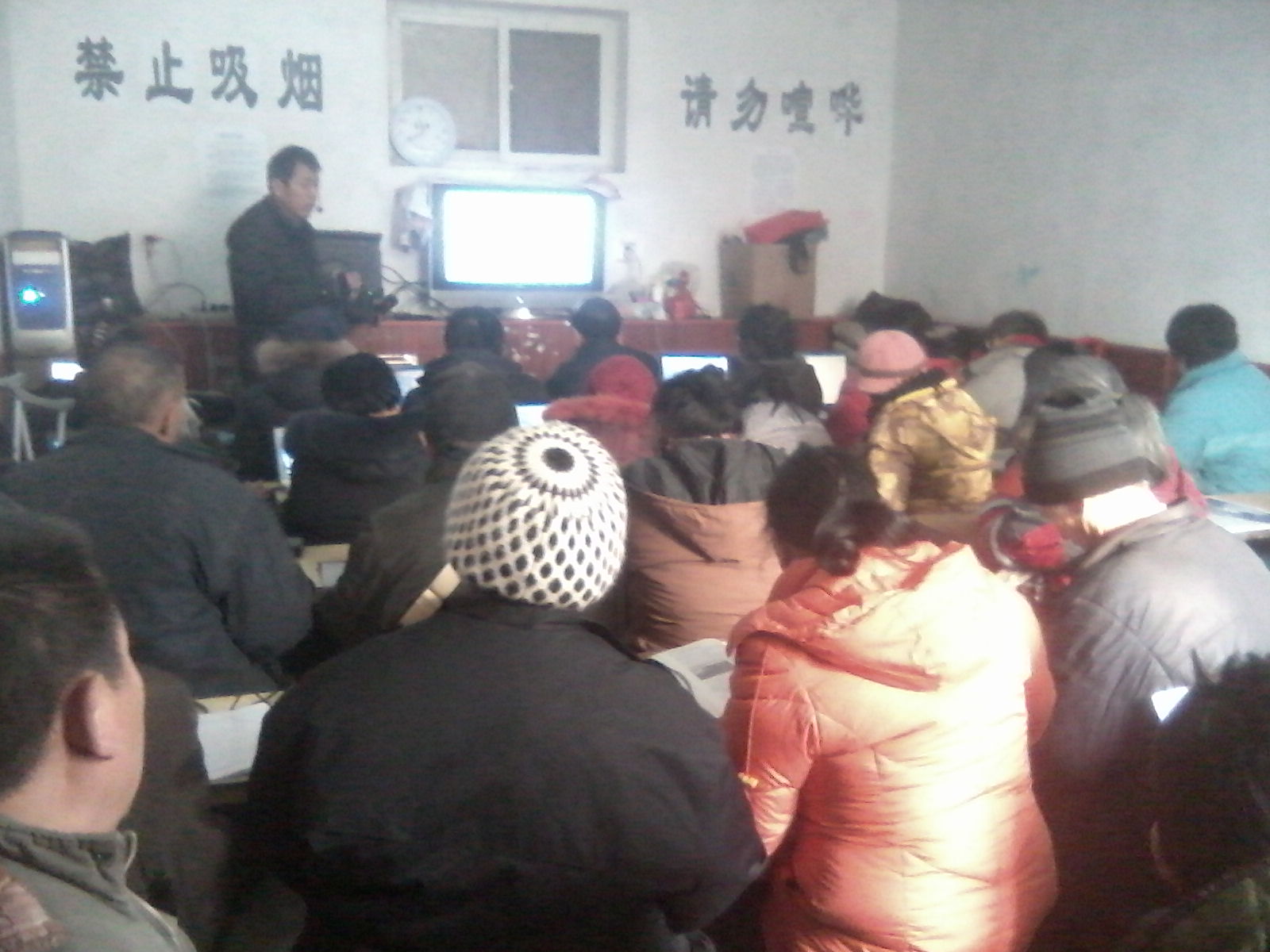 (维权网信息员唐韵报道)1月19日星期六,在北京主要为上访维权人士授课的德赛电脑培训班如期开课。虽然学习班的横幅不见了,但前来参加这期学习班的人较前两次多了。60名学员把教室挤得满满的,有的学员只好站在外面听课。