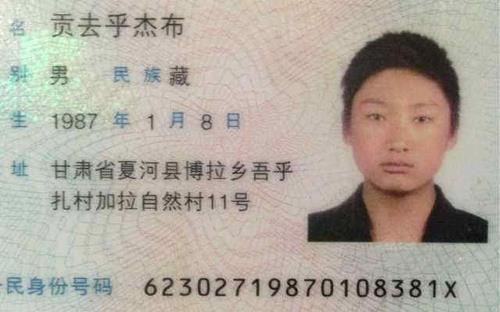 从境内藏地传出他的身份证照片:名字是贡去乎杰布,住在甘肃省夏河县博拉乡吾乎扎村加拉自然村11号,生于1987年1月8日。还有一张他生前照片,26岁的他看上去像个卷发少年。据境内藏人介绍,他的父亲多吉次丹已经去世,他有母亲仁钦措、哥哥帕巴次仁、妹妹宁姆吉,他与妻子卡姆塔生有一岁零十个月的男孩。