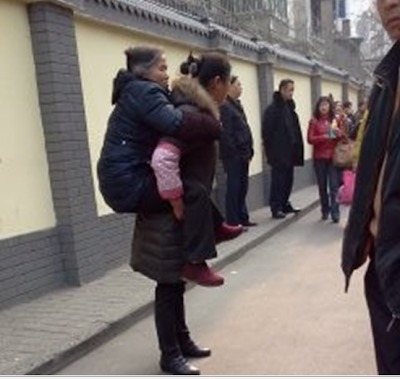 下午,被人踩踏的银润华老人一直昏沉,不思饮食。其女儿背起老人,要在省政府门前撞车,被警察拦截。