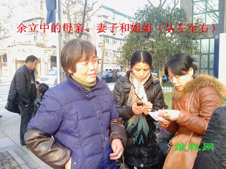 浙江省第十二届人大一次会召开后,死者余立中的妻子方志红、老母吴良英、幼子余嘉伟和姐姐余委芬到省城诉冤,向人民代表递交控告书。但由于当局戒备森严,余家四人没有机会看到人民代表,更不用说向他们递交状子。无奈,他们只好到浙江省公安厅控告,但旋即被龙游县公安局派人带走。