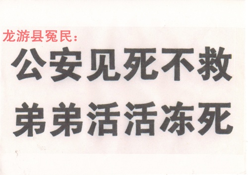 我弟弟余立中,现年42岁,老家住浙江省衢州市龙游县塔石镇里王村,现在龙游打工,住桥下居民区。因我家原是洞山源移民,受当地村干部歧视,于2005年和2009年父子二人先后被村主任郑富红殴打,父亲忧郁成疾,于2011年含恨死亡,余立中由于精神上受到刺激,变得沉默寡言。2012年12月26日下午5点骑电瓶外出,对妻子称要回老家去。这天下着大雨,天气寒冷。晚上8点,他浑身湿淋淋地走入横山镇大平山路边王义香小店,所骑的电瓶车没有了,身上的钱和手机也没了,连腰上所系的皮带也不见了。他全身发抖,站立不稳,神志不清,也不说话。当时店主和在店里的村民十分可怜他,马上送水,问他情况,由于身体脆弱,他水也不喝,话也讲不出来。在这样的情况下,店主王义香马上向110求助,110民警说把他推出去就好了,推不出去他们再去。根据110的答复,店主劝我弟弟离店,他就离开了。可是过了不久他又回到店里来,店主看他这样站也站不住,怕出事就再次报警。110回答还让他出去,我弟弟没办法只好又离开。后来110自称来过,但店门已关。并说他们还在附近找过,但实际上我弟弟当晚就冻死离小店不到1公里的青龙山水泥厂外马路上。这说明他们根本就没有找过,甚至没有来过小店。