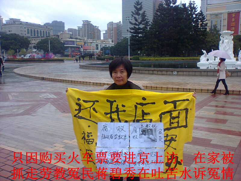 陈依香、林兰英、刘玉钗、林炳兴、陶梅、罗丽华、刘建新、蒋碧秀、卓道明、纪斯尊、林应强、郑春英、陈其海、林善忠、张晓红、林祥官等福州五区八县的维权人士和冤民,在现场向过路群众和游人控诉,在中央一直强调“老虎苍蝇都要打”下,福州仍是司法不彰,遍地腐败,把众冤民都逼上了绝路。