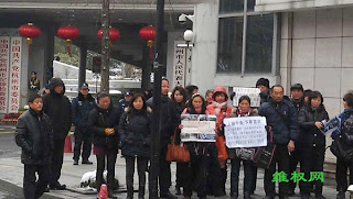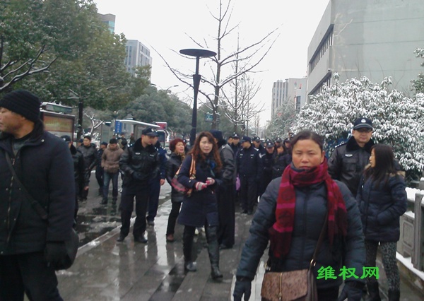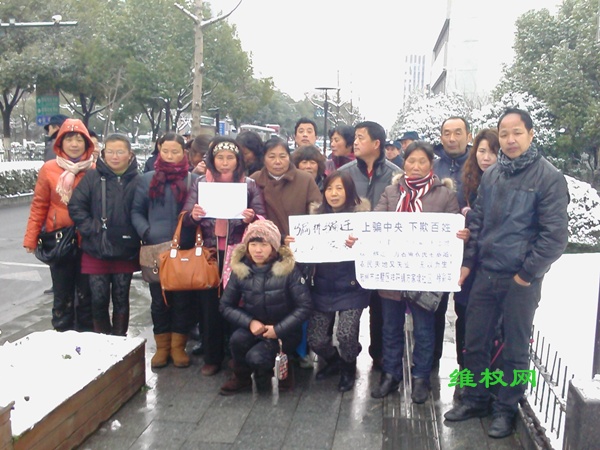 (维权网信息员钱江报道)2月8日,杭州众多的拆迁受害人及其他蒙冤者们,因无法过年到市政府请愿,希望市委书记黄坤明和市长邵占维出来见见他们,关心一下他们,让他们安心过个年。