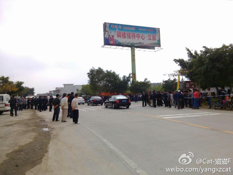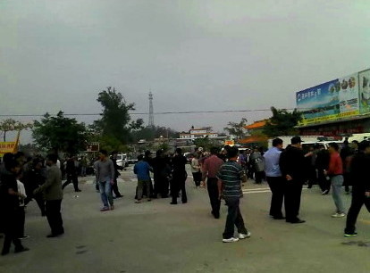 2013年2月14日,广东江门开平市塘口镇,著名的碉楼立园旅游景区,数百名村民在入口处进行围堵示威,抗议村干部贪污腐化。