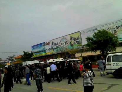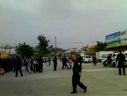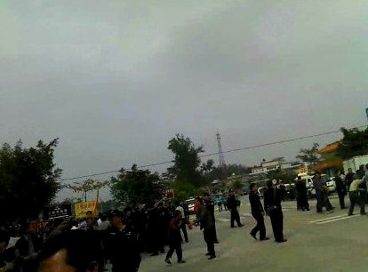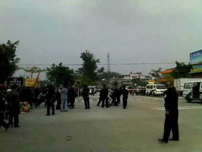 大批警察在场戒备和疏导交通。下午,警方清场,5名村民被捕。