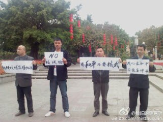 今天上午11点左右,广州街头民主人士(无派别)成秋波、徐琳、秀才江湖、张茂中、缘才、张圣雨等人,来到广州人民公园拉横幅、举牌,抗议朝鲜核试验。