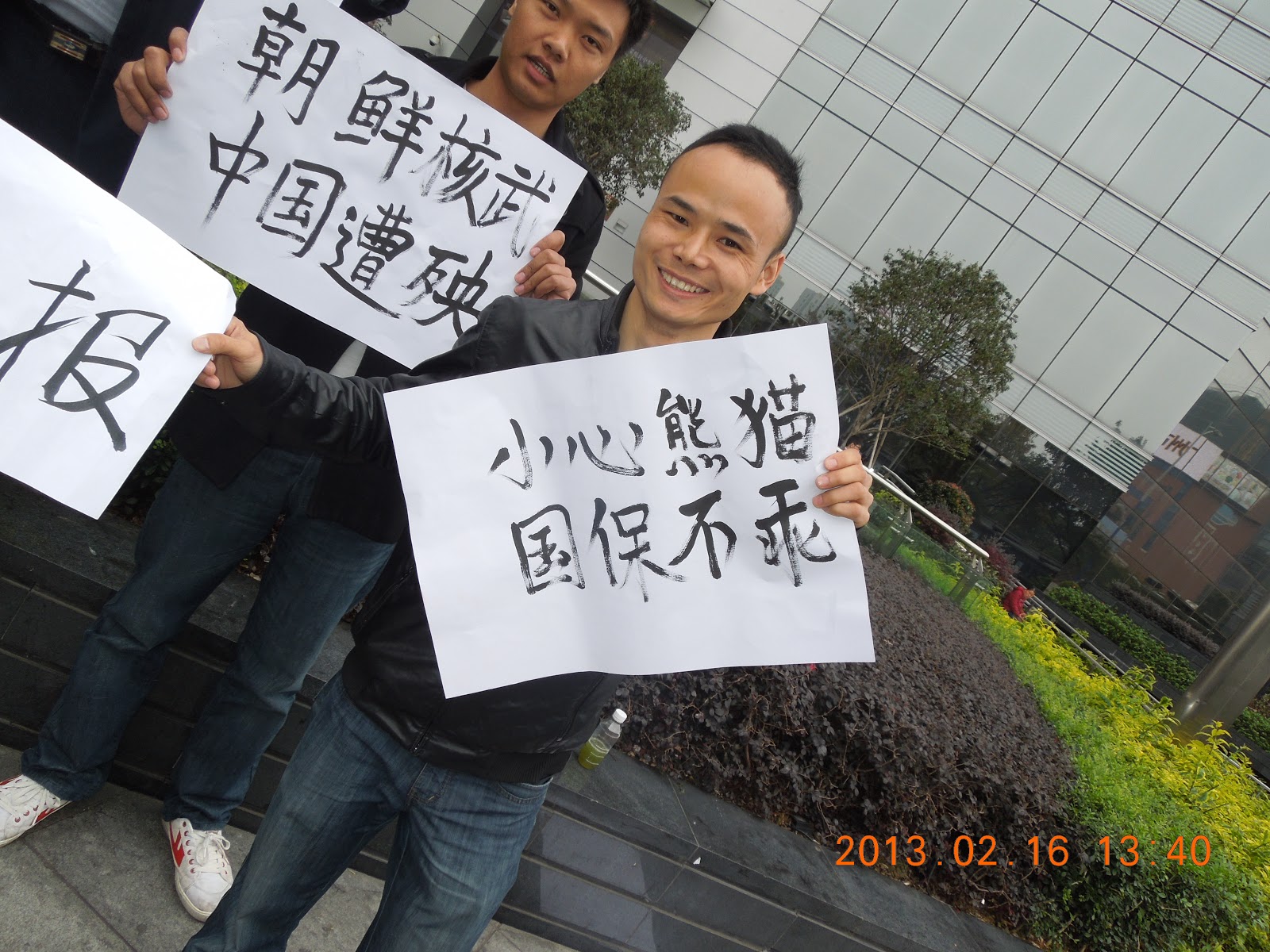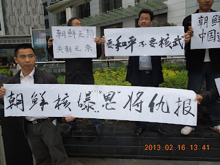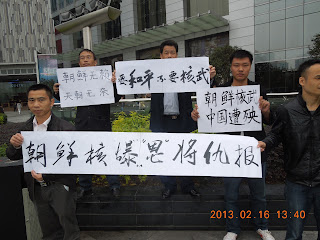 我是下午1点半才参加这次抗议朝鲜核爆举牌的。上午的事情我听参加者讲述,并根据当事人的微博资料进行了综述。