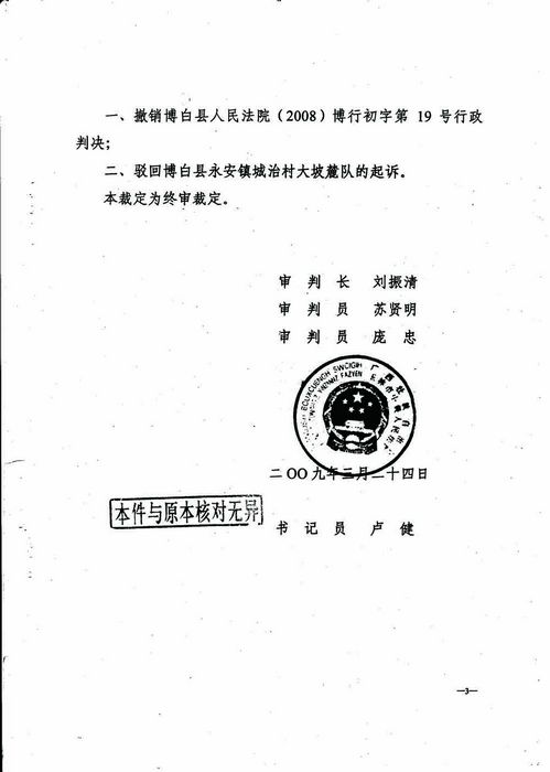博白县人民法院不深入调查了解,偏信单方之言,轻率地决定驳回了原告城治大坡麓队的诉讼请求,大坡麓队不服,于2009年1月20日上诉至广西玉林市中级人民法院,玉林市中级法院认为《中华人民共和国行政诉讼法》于1990年10月1日开始施行,而城治村大坡麓队与永安供销社发生的城治村代销店纠纷争议的时间是在1989年《行政诉讼法》施行之前,当时的法律没有规定法院受理此类案件,于2009年3月24日玉林市中级法院终审裁定撤销博白县人民法院(2008)博行初字第19号行政判决,驳回博白县永安镇城治村大坡麓队的起诉。