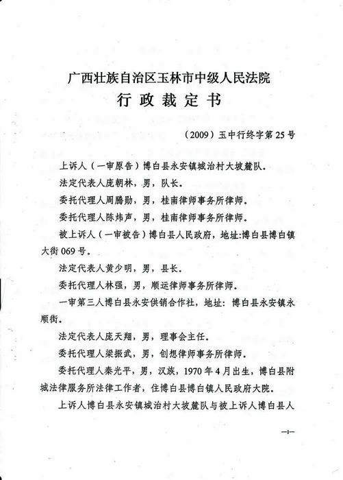 当时大坡麓队不服,于2008年11月17日向博白县人民法院提出行政诉讼,要求法院判令时任博白县县长黄少明下令博白县国土资源局澄清并撤消在博白县国土资源局没有存档的违规签发给永安供销社的城治代销店国有土地使用证的证明,归还本属城治大坡麓队所有的房屋土地所有权。