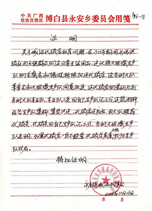 八、在1974年和1975年间,整个广西博白县所有的大队革委会都修建了同样的村属代销店。在供销社倒闭瓦解后全部所有的代销店房产,都是归回出地、出物、出钱修建的生产队或大队所有,没有一处是归供销社所有的。为什么城治村的例外?