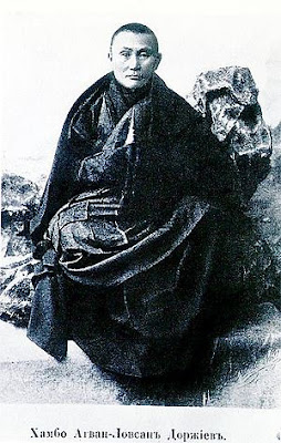 布里亚特(Buriat)喇嘛阿格旺多杰(Agvan Dorjiev)在图伯特现代历史中的作用迄今还没有得到足够的承认,这主要是由于英国方面的报告和记述总是把他贬低为一个阴险的俄国间谍。他在1873年第一次来到拉萨,并进入哲蚌寺学习,在那里获得了格西(geshe)学位。他的博语(即“藏语”)名字是阿旺洛桑(Ngawang Lobsang),他是年轻的达赖喇嘛的7名辩经搭档(tsenshab)之一。1888年,他成为达赖喇嘛的挚友和助理教师。