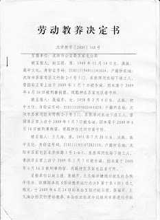 据赵玉德刚被警察带走之前给本网信息员发的短信说,是他近日在新浪博客上公布了2009年6月至2010年9月被当地公安局劳教一年三个月的事情。今天警察就来找他了,将他的电脑抄走,当地派出所的电话是024——89813115。